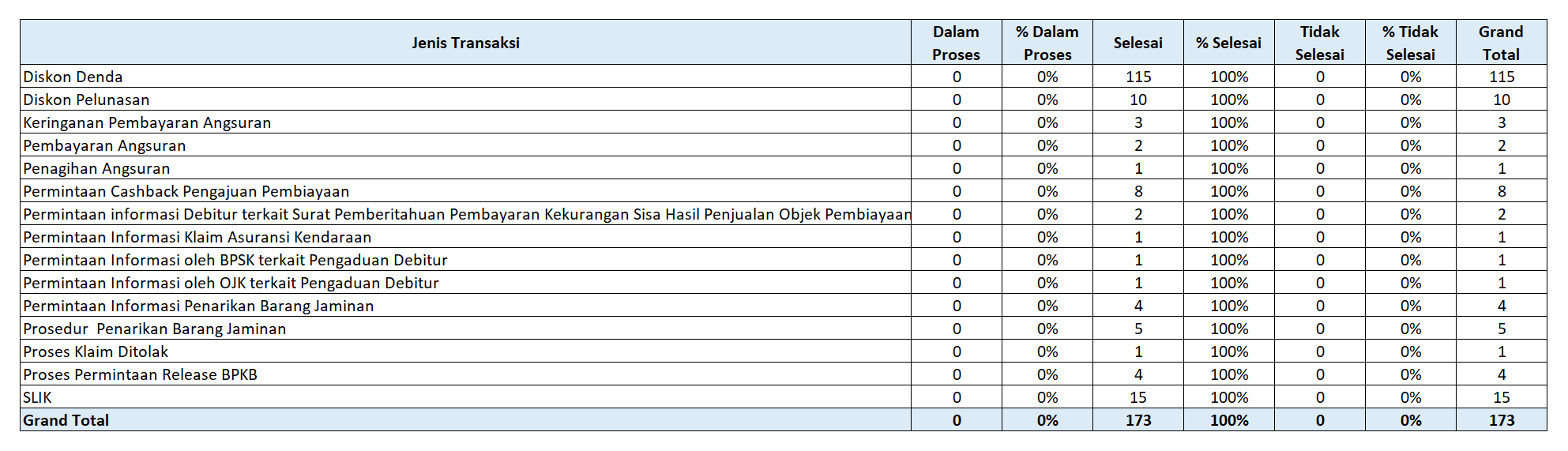Bersama ini kami sampaikan Keterbukaan Informasi mengenai Laporan Penanganan Pengaduan Tahunan 2023 Unduh Disini >>>