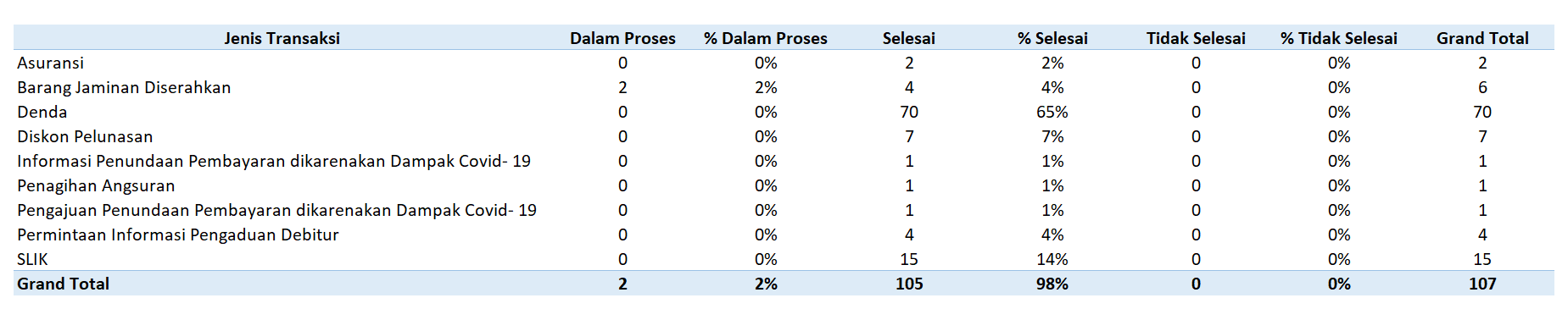 Bersama ini kami sampaikan Keterbukaan Informasi mengenai Laporan Penanganan Pengaduan Tahunan Unduh Disini >>>